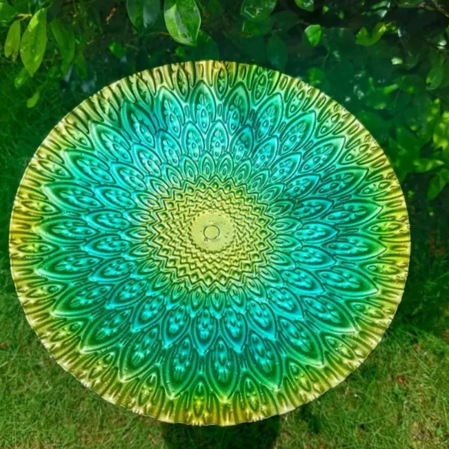 Садова поїлка для птахів «Малахіт» — це стильний та практичний елемент декору для саду, двору або тераси. Виріб поєднує декоративний дизайн та функціональність, створюючи комфортне місце для птахів, де вони можуть пити воду або купатися.