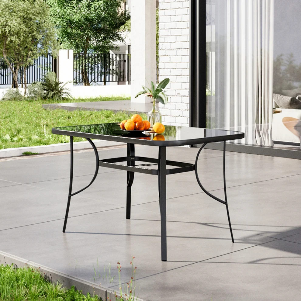 Стільниця виконана із загартованого рифленого скла з ефектом «водної хвилі» (Water Ripple), що додає виробу витонченості та легко поєднується з будь-якими садовими стільцями. Поверхня проста у догляді та стійка до щоденного використання.