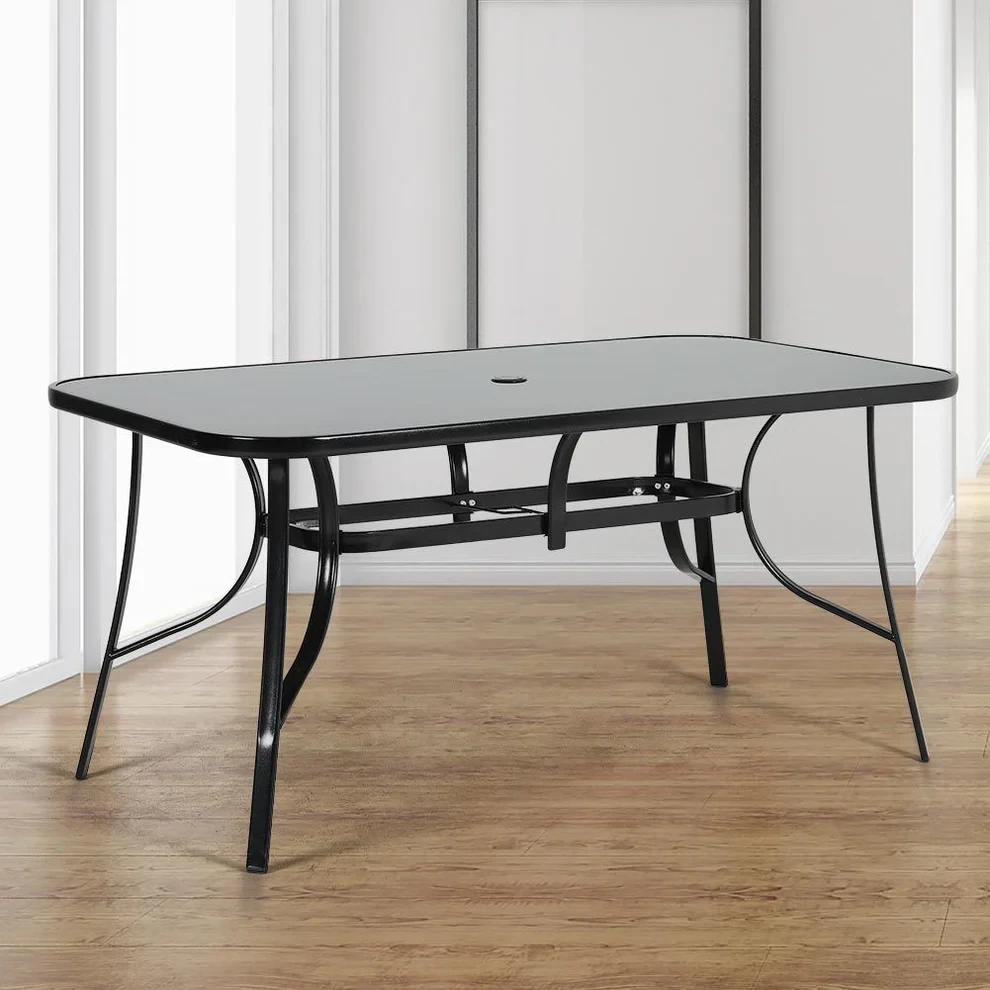 Міцний сталевий каркас забезпечує надійність і стабільність конструкції. У центрі столу передбачений отвір для встановлення парасольки, що дозволяє комфортно відпочивати як у сонячну, так і в дощову погоду.