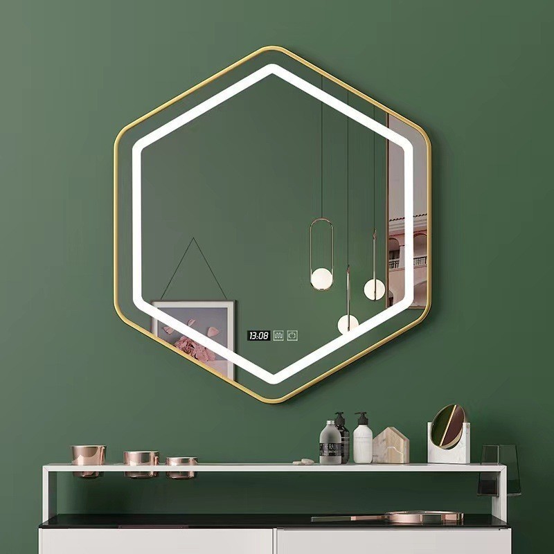 Шестикутне LED дзеркало у ванну 70×64 см | Один сенсор | Три режими світла