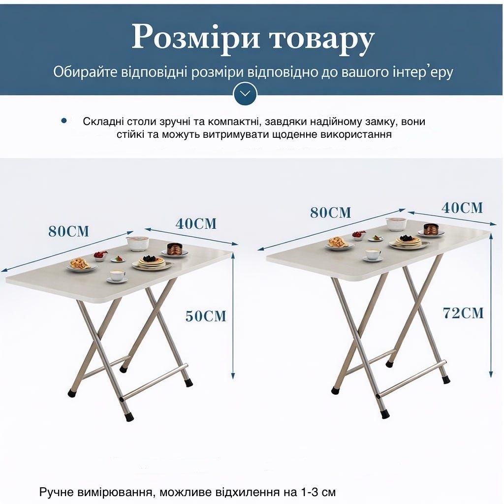 Практичний та стильний складний стіл — ідеальне рішення для невеликих квартир, студентських кімнат, офісів або тимчасових робочих зон. Завдяки компактному розміру та сучасному мінімалістичному дизайну він легко впишеться в будь-який інтер’єр.