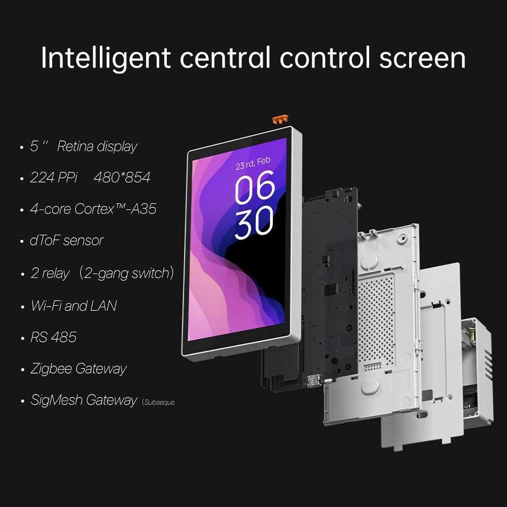 Смарт-панель — це 5-дюймовий центральний екран керування розумним будинком з підтримкою платформи Tuya та голосового управління. Пристрій поєднує функції багаторежимного шлюзу (Multi-mode Gateway) та сенсорної панелі для централізованого керування системою автоматизації.