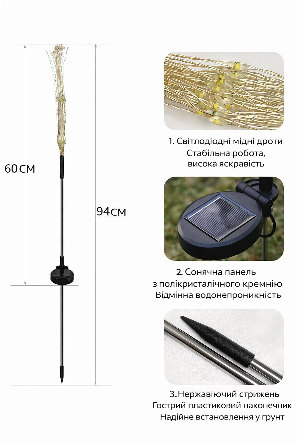 Декоративний вуличний світильник у формі феєрверку створює ефект яскравого світлового вибуху у саду, на газоні, біля доріжок або тераси.