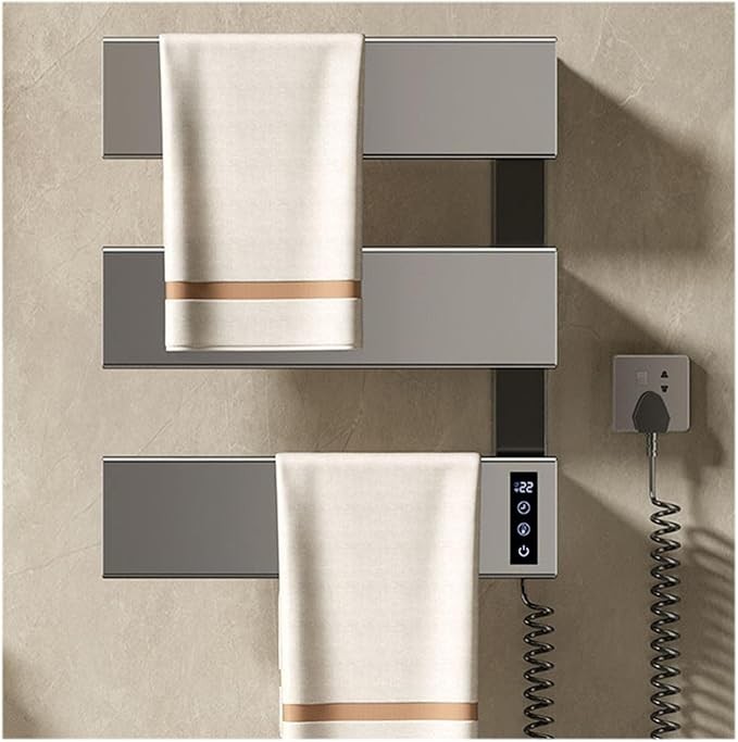 Трьохпанельна електрична сушарка для рушників з дисплеєм та таймером, 150W, настінна (лівий / правий вихід кабелю)
