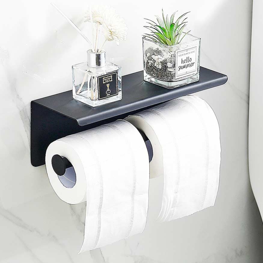 Настінний тримач для туалетного паперу з полицею — сучасний і зручний аксесуар для ванної кімнати. Конструкція поєднує тримач для рулону та верхню полицю, на якій можна розмістити телефон, серветки або інші дрібні предмети.