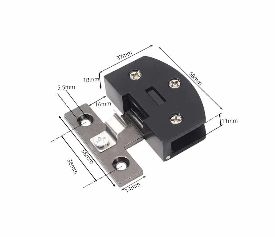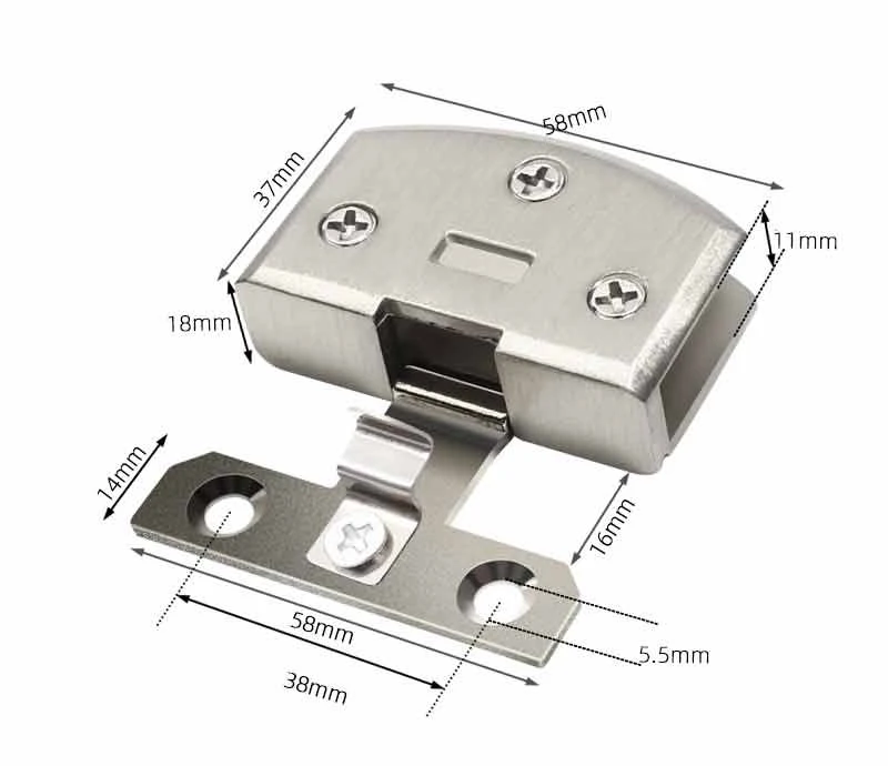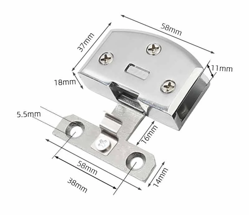 Велика напівкругла петля для скляних дверцят з цинкового сплаву, 58×37 мм, для скла 6–10 мм
