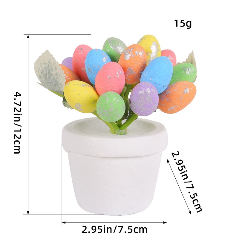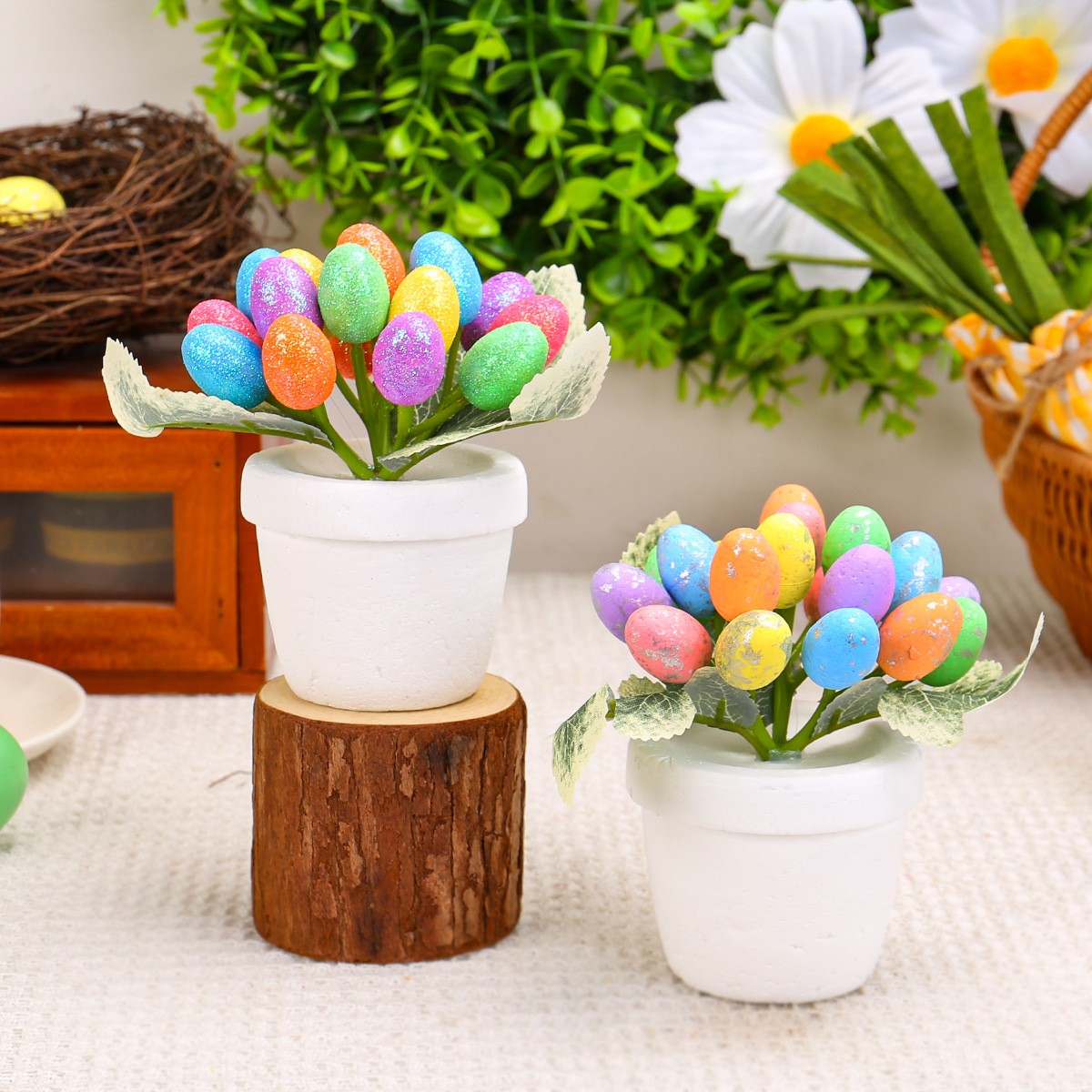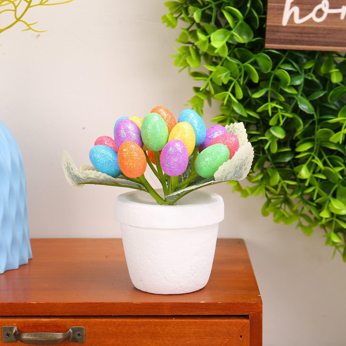 Яскрава великодня композиція у вигляді міні-букета з пасхальних яєць у декоративному горщику стане стильним доповненням святкового декору. Композиція виконана у мультяшному стилі, виглядає святково та ніжно.