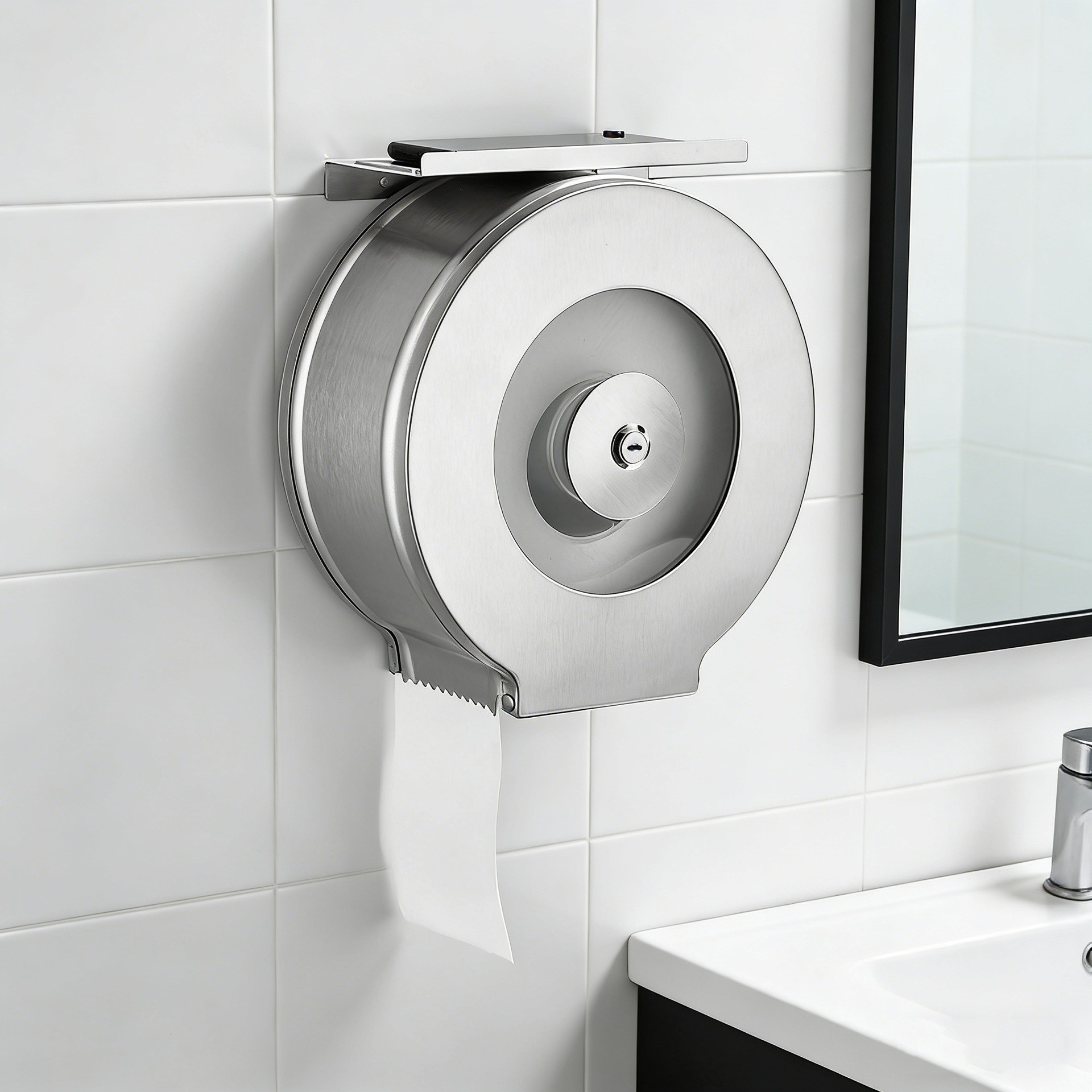 Практичний та надійний диспенсер закритого типу з верхньою полицею для телефону або дрібних предметів. Підходить для громадських санвузлів, офісів, кафе, ТРЦ, медичних закладів та інших місць з високою прохідністю.
