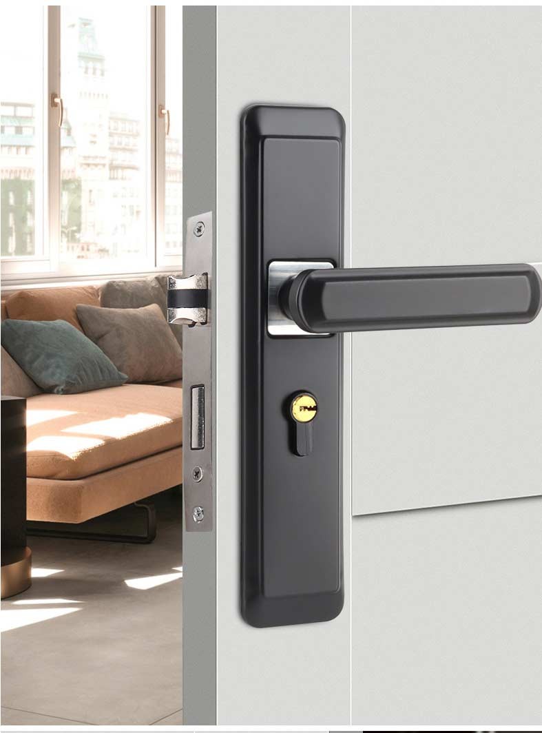 Врізний дверний замок з ручкою у сучасному мінімалістичному стилі. Підходить для встановлення на дерев’яні міжкімнатні двері. Оснащений безшумним механізмом та подвійним язичком (скошений + квадратний), що забезпечує плавне та надійне закривання. Міцний корпус із цинкового сплаву гарантує довговічність у використанні. Простий у встановленні, універсальний варіант для дому або офісу.